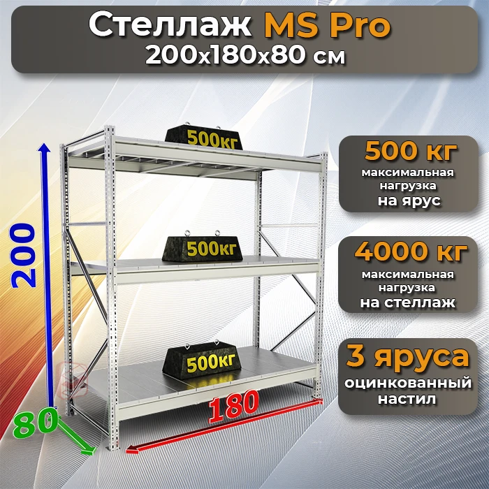 Стеллаж MS Pro 200х180х80 с 3 ярусами - это идеальный выбор для складов, производственных помещений, гаражей и торговых точек. Среднегрузовая конструкция с оцинкованными полками обеспечивает долговечность и защиту от коррозии, что гарантирует долгосрочную эксплуатацию.